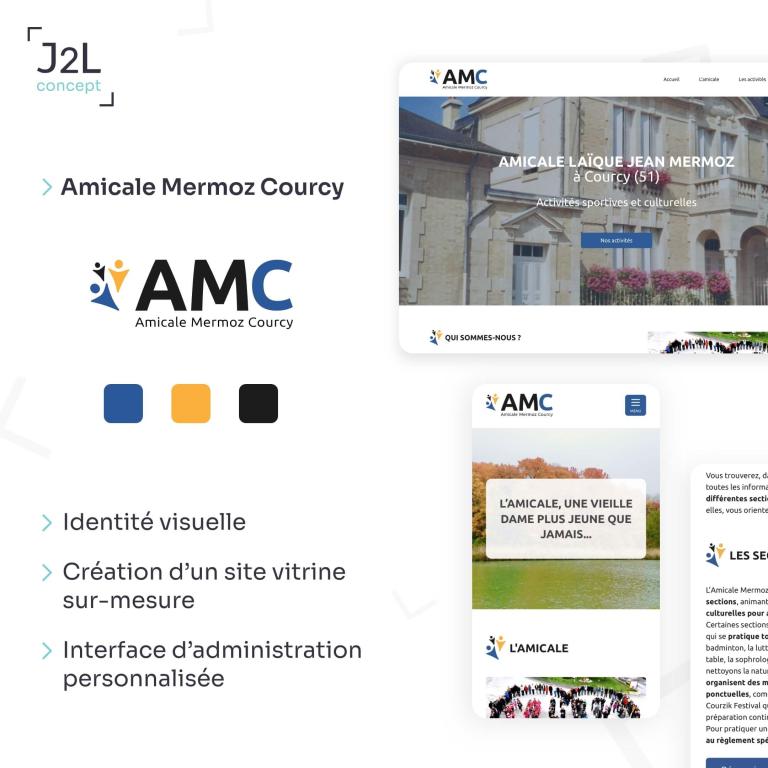 « La société J2L CONCEPT a réalisé le site internet de l'association AMICALE LAIQUE JEAN MERMOZ COURCY. Le site a été mis en ligne en juillet 2022. Je tiens à féliciter Laura et Jonathan pour leur écoute, leur professionnalisme et la qualité de leur travail. Le site donne entière satisfaction, il est simple d'utilisation et il répond à nos attentes. »